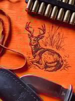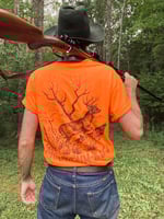 The season of the great American white tail hunt is quickly approaching! Bows and muzzleloaders are being dusted off. Rifles looked at on the rack. Soon the venison will grace our tables. But it sure isn't easy finding them mountain bucks... This blaze orange version of the mountain buck T is two sided and perfect for days scouting or warm weather pack outs!