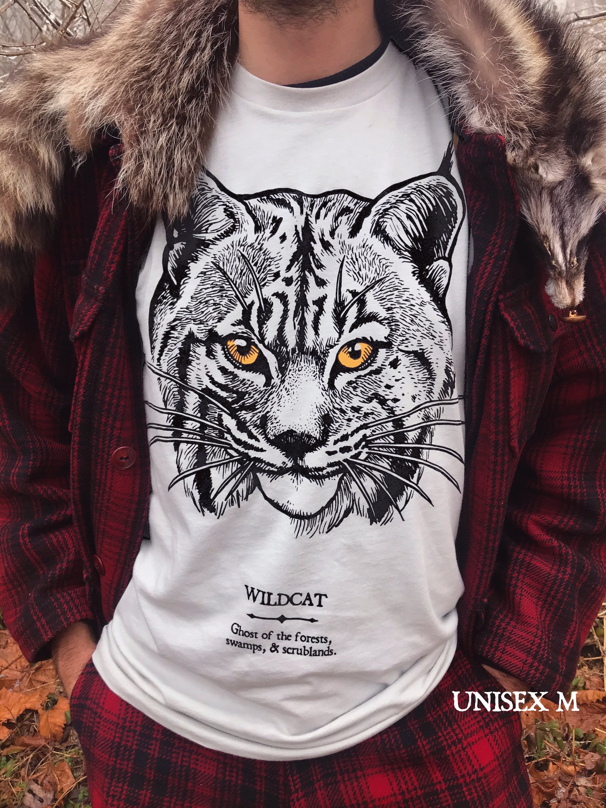 Ghost of the forests, swamps, and scrublands! Though rarely seen due its perfect camouflage, nocturnal lifestyle, and stealthy nature, the bobcat [colloquially called wildcat] is North America's most abundant wild feline. Their population has increased nearly three fold since the 1980's. This master hunter of cottontails, rodents, and even deer was highly revered by many Native American tribes as hunting medicine, celestial blessings, and black magic. The wildcat sees that which goes unseen, its glowing eyes stare right through you, into the furthest reaches of the soul.
